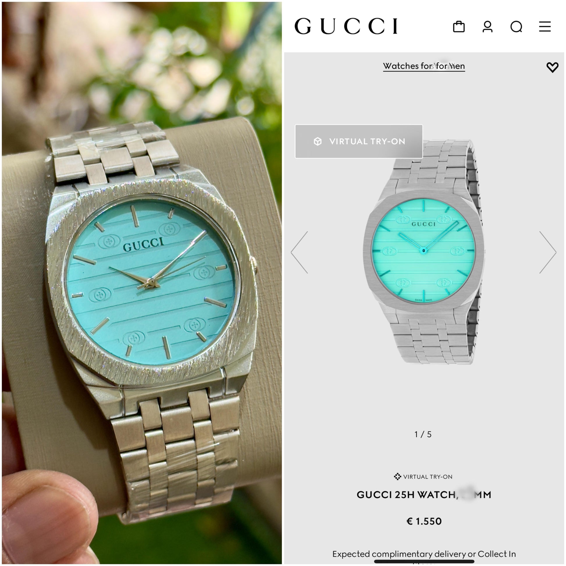 The GUCCI 25H's streamlined silhouette was inspired by the sleek forms of contemporary architecture. The watch is presented with a thin multi-layer case and five-link steel bracelet, while the design is completed by monogram details and a gold-toned dial.