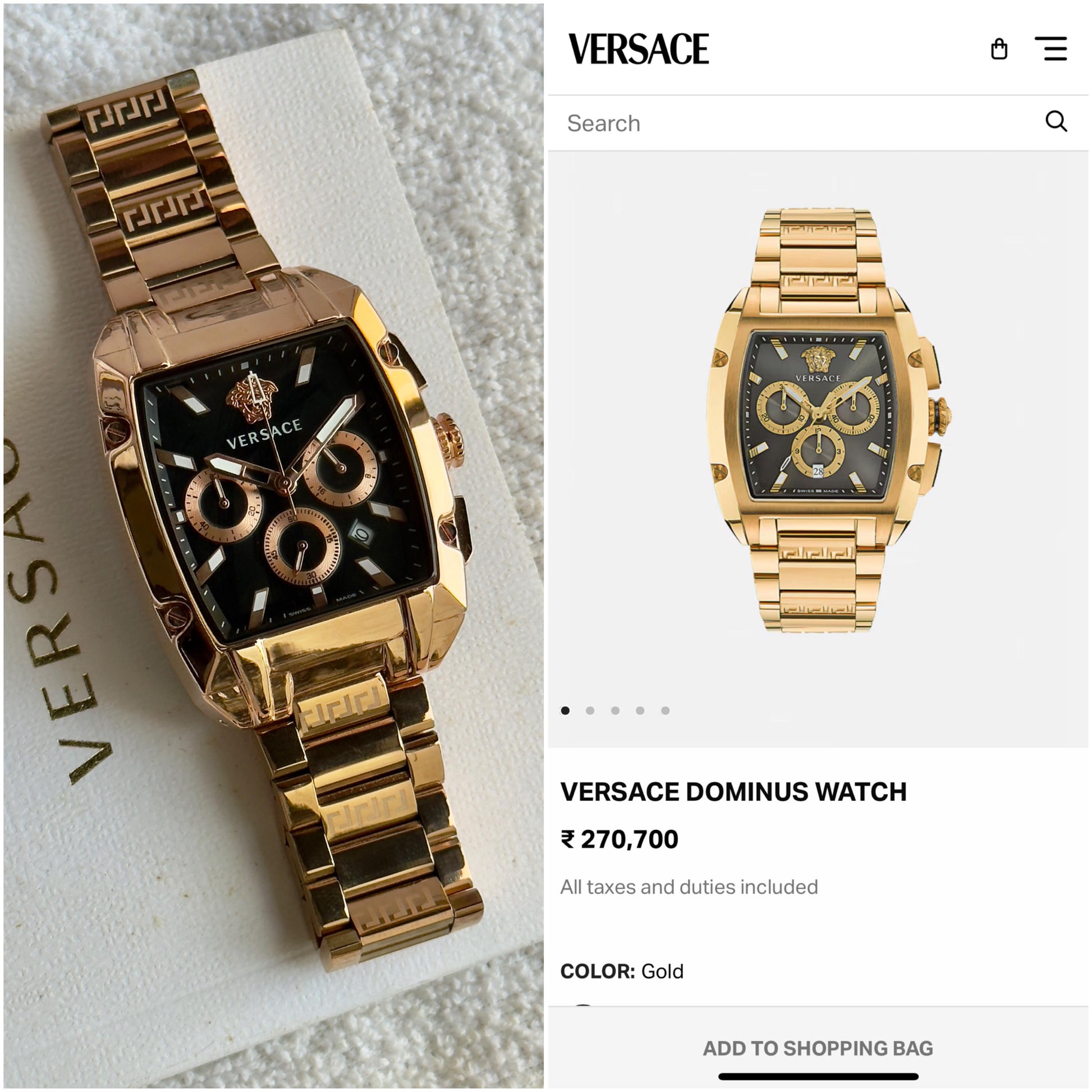 A stunning blend of luxury and precision, this Versace timepiece radiates elegance with its rose-gold finish and bold, sophisticated design.